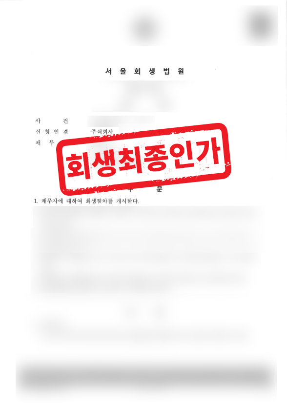 그 결과, 법원으로부터 기업회생 절차 개시 결정과 회생계획 인가를 받을 수 있었습니다.