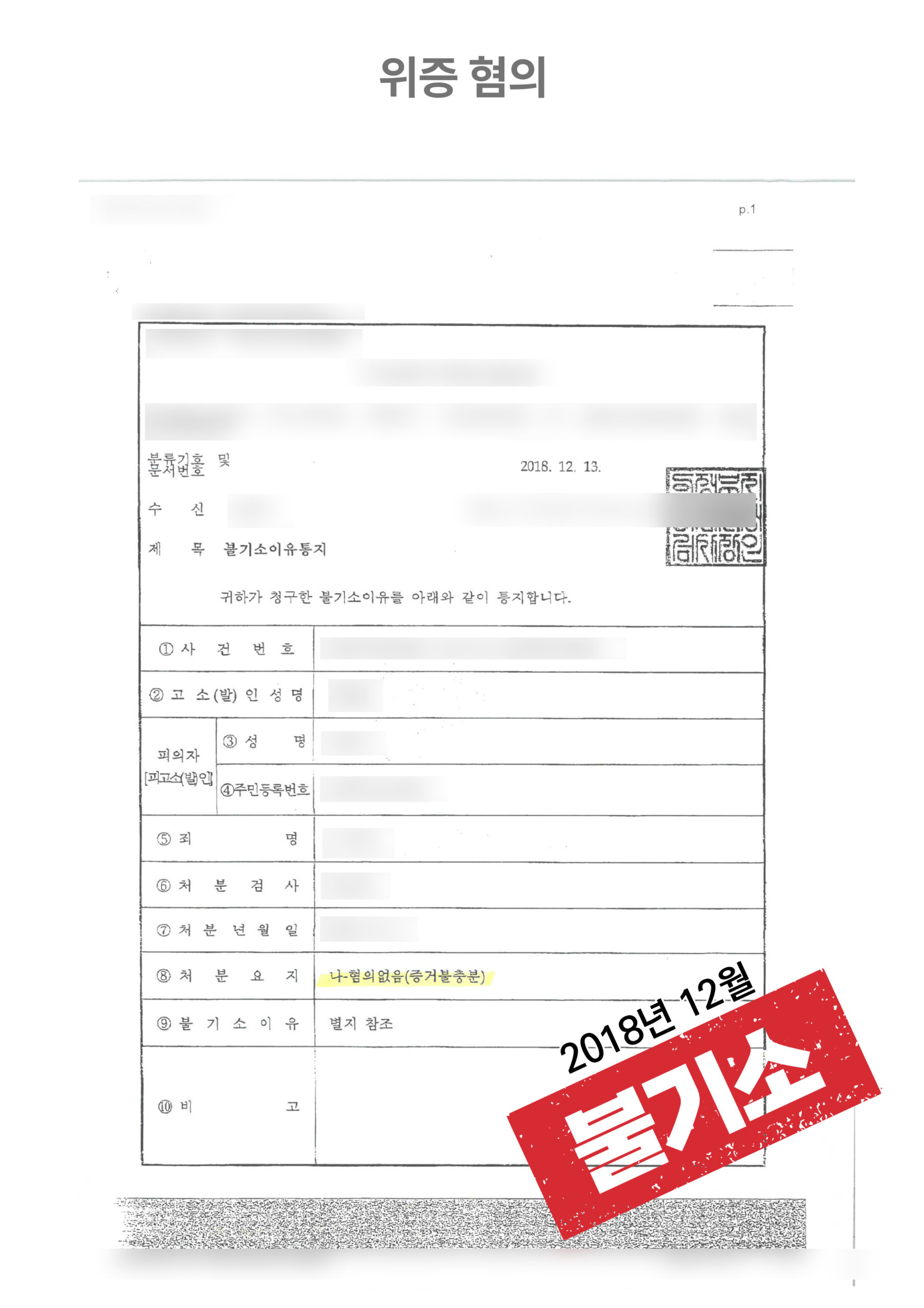 법원에서 위증하였다는 혐의 사실 ‘불기소’ 사건 배경의뢰인이 법정 증언에서 핵심 사실을 허위로 진술(위증) 했는지 핵심 쟁점검찰 판단검찰은 고소인 주장만으로는 의뢰인이 허위 진술 했다고 단정할 만큼 객관적 증거가 부족하다 봤습니다.사건 결과불기소 처분(혐의없음·증거불충분) whylawfirm2026-01-30T10:10:53+09:002026년 01월 29일|성공사례|